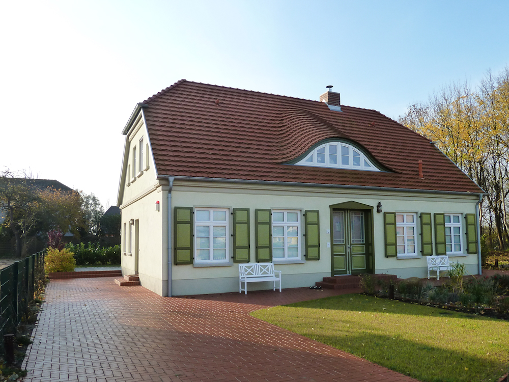 Unter Berücksichtigung der Auflagen seitens der Gemeinde war es beim Bau des Haus Solveig das Ziel, ein dem traditionellen Stil des Schifferhauses möglichst weitgehend nachempfundenes Gebäude unter ökologischen Gesichtspunkten zu errichten. Der Einklang zwischen Tradition und Moderne stand bei den Planungen und Ausführungen mit Fachleuten aus der Region im Vordergrund. Ob Fledermausgauben im Dach, massive Fensterbretter, kurze Dachüberstände, Echtholzfenster, im First befindlicher Kamin oder aufwendig ausgebildetes Gesims, an vielen Stellen des Hauses finden sich die Gestaltungsdetails alter fischlandtypischer Baukunst wieder. Der bei vielen, insbesondere älteren Schifferhäusern übliche Vorgarten verleiht dem Haus, angepasst an heute Bedürfnisse, ein großzügiges Antlitz.